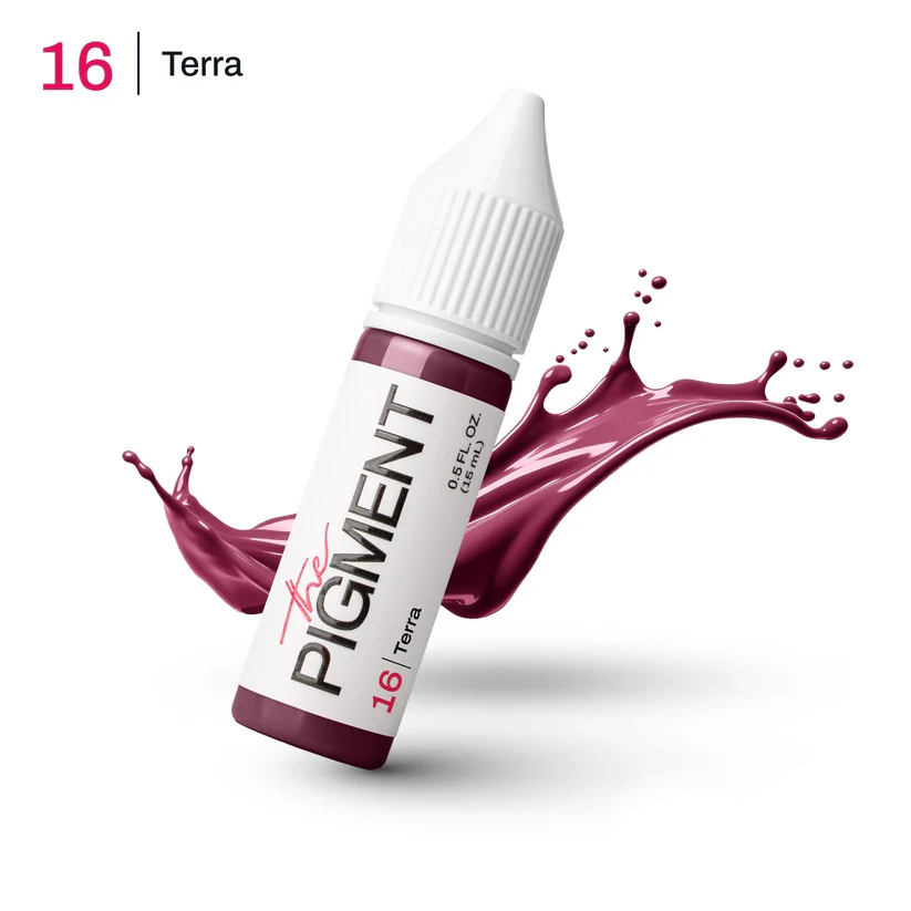 16 Terra è un pigmento ibrido caldo per labbra con un profondo sottotono terra-cotta. Terrestre, ricca e meravigliosamente equilibrata, questa tonalità dona alle labbra un calore naturale e una profondità espressiva. Ideale per le clienti che preferiscono toni maturi e sofisticati con una finitura morbida e vellutata. Il suo carattere caldo rosso-bruno armonizza i sottotoni irregolari o freddi e può essere utilizzato come tonalità a sé stante o come pigmento da miscelare per arricchire altri colori caldi.