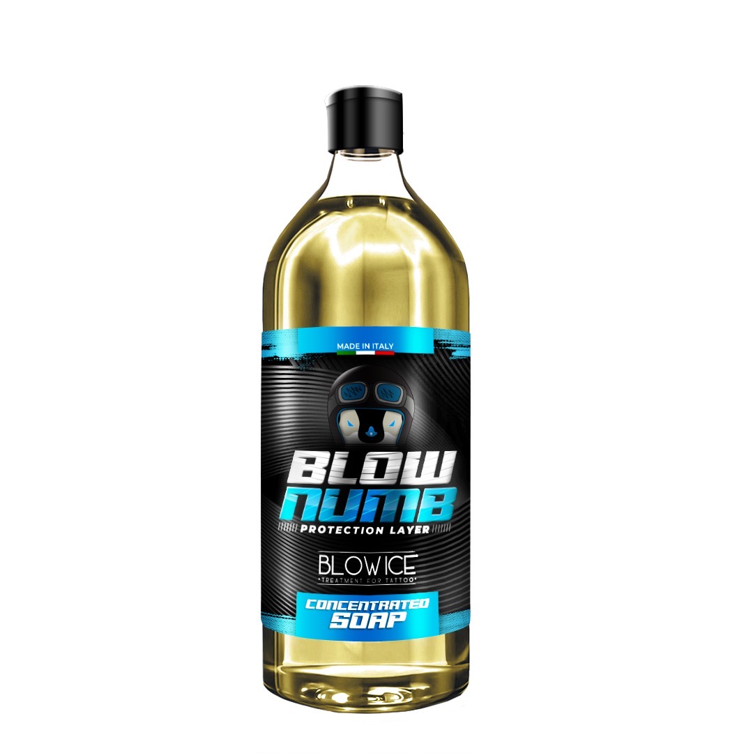 Blowice Blow Numb Soap è un sapone detergente arricchito con olio essenziale di chiodi di garofano, ingrediente che svolge un’efficace azione antibatterica e offre un effetto anestetico naturale, ideale per ridurre il dolore durante le sessioni di tatuaggio. Blowice Blow Numb Soap grazie alla sua formulazione offre proprietà protettive, idratanti, lenitive e astringenti.