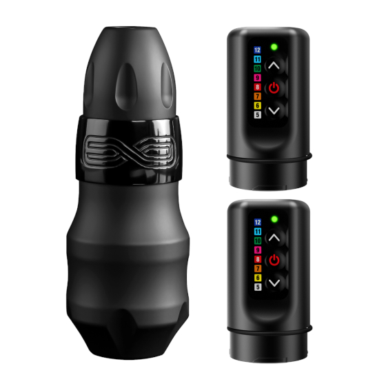 La FK Irons EXO è una macchina per tatuaggi modulari che possiede lo stesso motore della Spektra Flux. Il modulo RCA sulla EXO è rimovibile semplicemente ruotandolo leggermente e può essere rimpiazzato con il PowerBolt per usare la macchina in modalità wireless. Il “Design Modulare” permette all’artista la libertà di azionare la macchina con un alimentatore tradizionale e un cavo RCA, o con la batteria PowerBolt (che offre fino a 10 ore di lavoro wireless). Il design ergonomico della EXO, e il grip da 40mm, aiutano a tenere la mano rilassata durante le lunghe sessioni di lavoro. Grazie al peso della macchina tendente sulla parte anteriore, la pressione degli aghi è rivolta verso il basso.