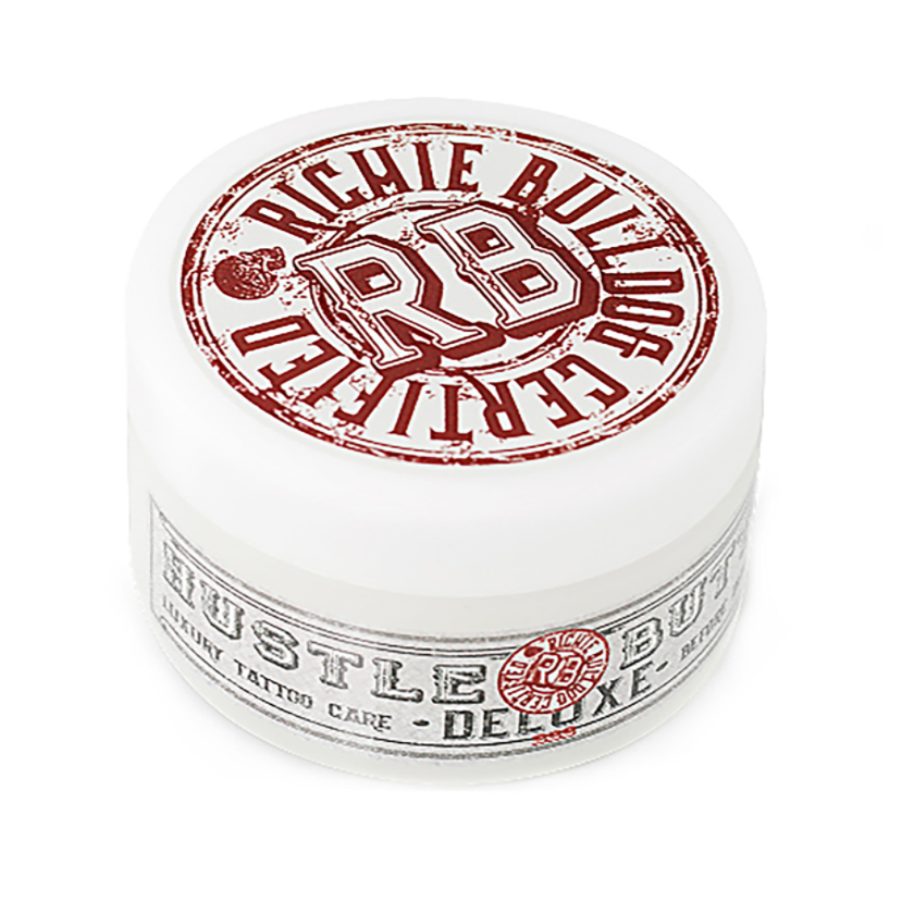 Hustle Butter Deluxe è un sostitutivo 100% naturale, 100% organico, vegano ai gel petrolati per la preparazione della pelle prima, come lubrificante per il tatuaggio durante e per curare la pelle dopo nel processo del tatuaggio. Grazie alla formulazione a base di mango, cocco, papaya e burro di karité offre moltissimi benefici senza rimuovere lo stencil. Favorisce la guarigione sin dal primo contatto, riducendo rossore, gonfiore e sanguinamento. La pelle rimane lavorabile favorendo la penetrazione del colore.. anche il bianco non è mai entrato cosi facilmente!