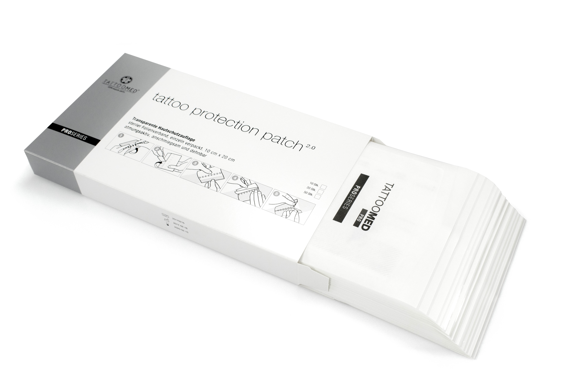 TattooMed Tattoo Protection Patch è un dispositivo medico CE ultrasottile e traspirante che favorisce una guarigione ottimale delle ferite post tatuaggio. Il prodotto deve essere applicato dopo la seduta sulla pelle secca tatuata e garantendo un clima ideale fino a 5 giorni. Il prodotto, oltre ad essere perfetto per una rapida guarigione, impedisce ai corpi estranei di penetrare riducendo il rischio di infezione e offrendo alla pelle la possibilità di rigenerarsi e di rilassarsi in modo ottimale.
